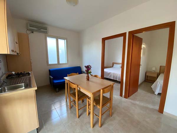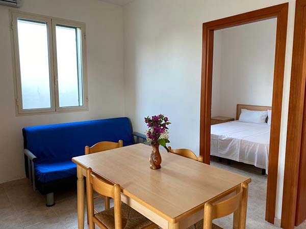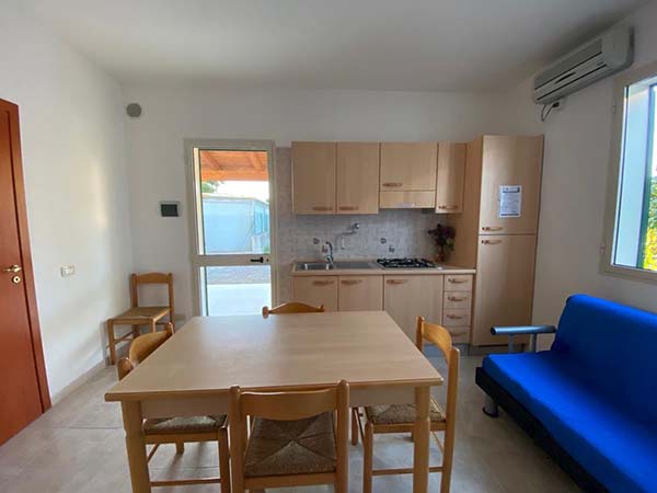 Le villette sono composte da soggiorno/cucina, 2 camere da letto matrimoniali e un bagno. Gli alloggi sono arredati e accessoriati con frigorifero stoviglie e pentolame.